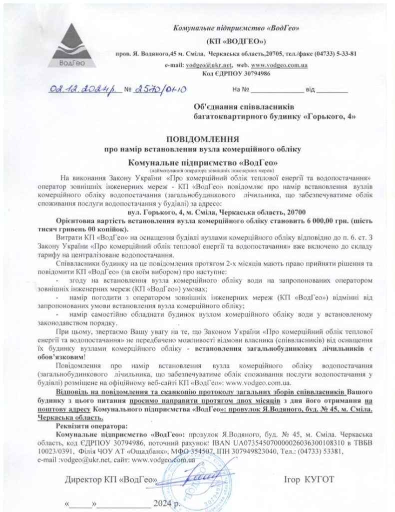 Повідомлення про намір встановлення вузла комерційного обліку по вул. Горького, 4 Запис опубліковано:02.12.2024 Категорія запису:Повідомлення про намір встановлення Прочитати більше статей Попередній записПовідомлення про намір встановлення вузла комерційного обліку по вул. Незалежності, 45 Наступний записПовідомлення про намір встановлення вузла комерційного обліку по вул. Незалежності, 60