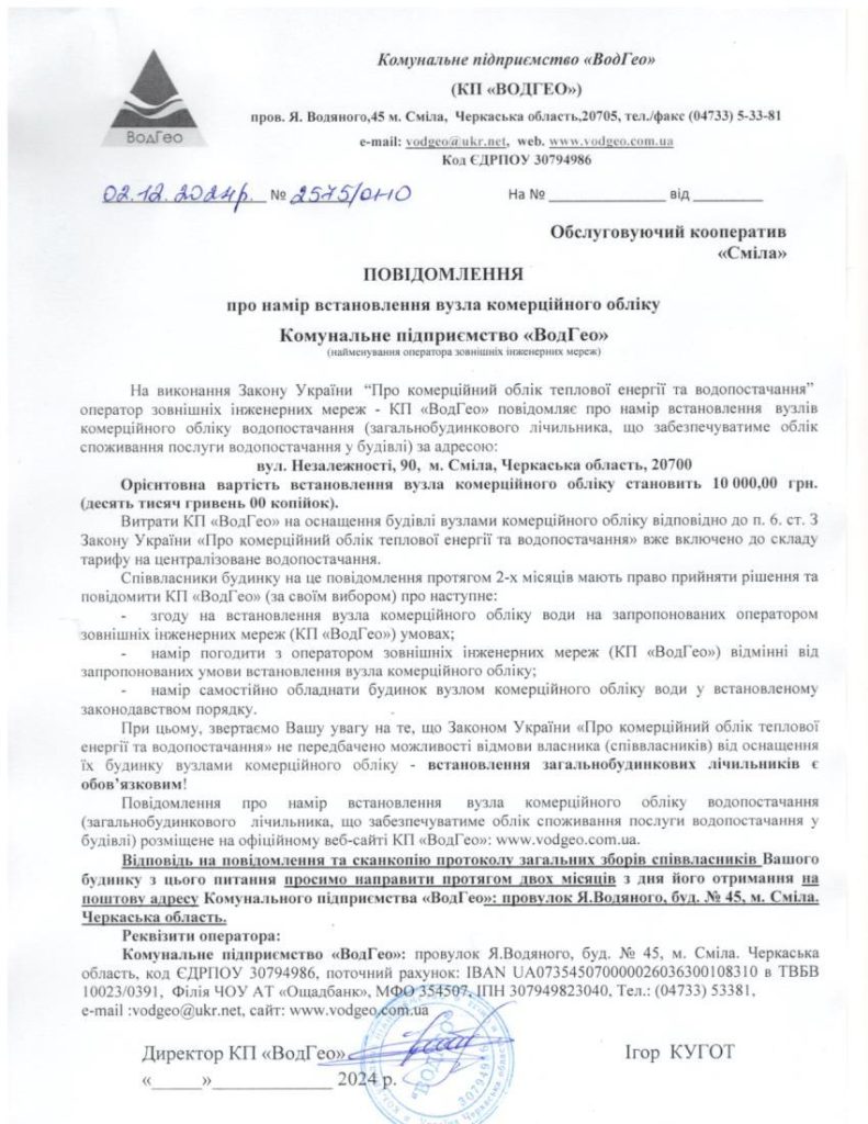 Повідомлення про намір встановлення вузла комерційного обліку по вул. Незалежності, 90 Запис опубліковано:02.12.2024 Категорія запису:Повідомлення про намір встановлення Прочитати більше статей Попередній записПовідомлення про намір встановлення вузла комерційного обліку по вул. Незалежності, 88 Наступний записПовідомлення про намір встановлення вузла комерційного обліку по вул. Перемоги, 20
