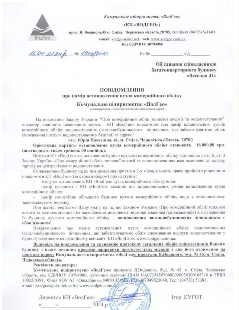 Повідомлення про намір встановлення вузла комерційного обліку по вул. Юрія Пасхаліна, 41 Запис опубліковано:15.04.2024 Категорія запису:Повідомлення про намір встановлення Прочитати більше статей Попередній записПовідомлення про намір встановлення вузла комерційного обліку по вул. Юрія Пасхаліна, 43 Наступний записПовідомлення про намір встановлення вузла комерційного обліку по вул. Кармелюка, 82