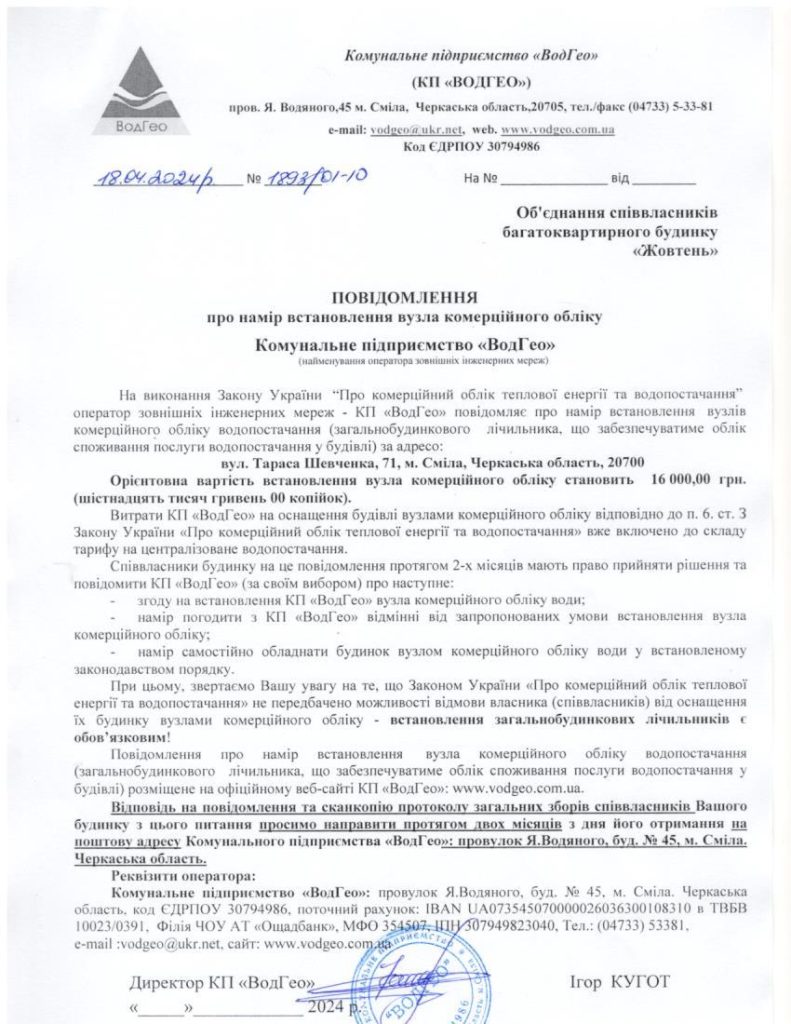 Повідомлення про намір встановлення вузла комерційного обліку по вул. Тараса Шевченка, 71 Запис опубліковано:18.04.2024 Категорія запису:Повідомлення про намір встановлення Прочитати більше статей Попередній записПовідомлення про намір встановлення вузла комерційного обліку по вул. Богдана Хмельницького, 44 Наступний записПовідомлення про намір встановлення вузла комерційного обліку по вул. Незалежності, 80