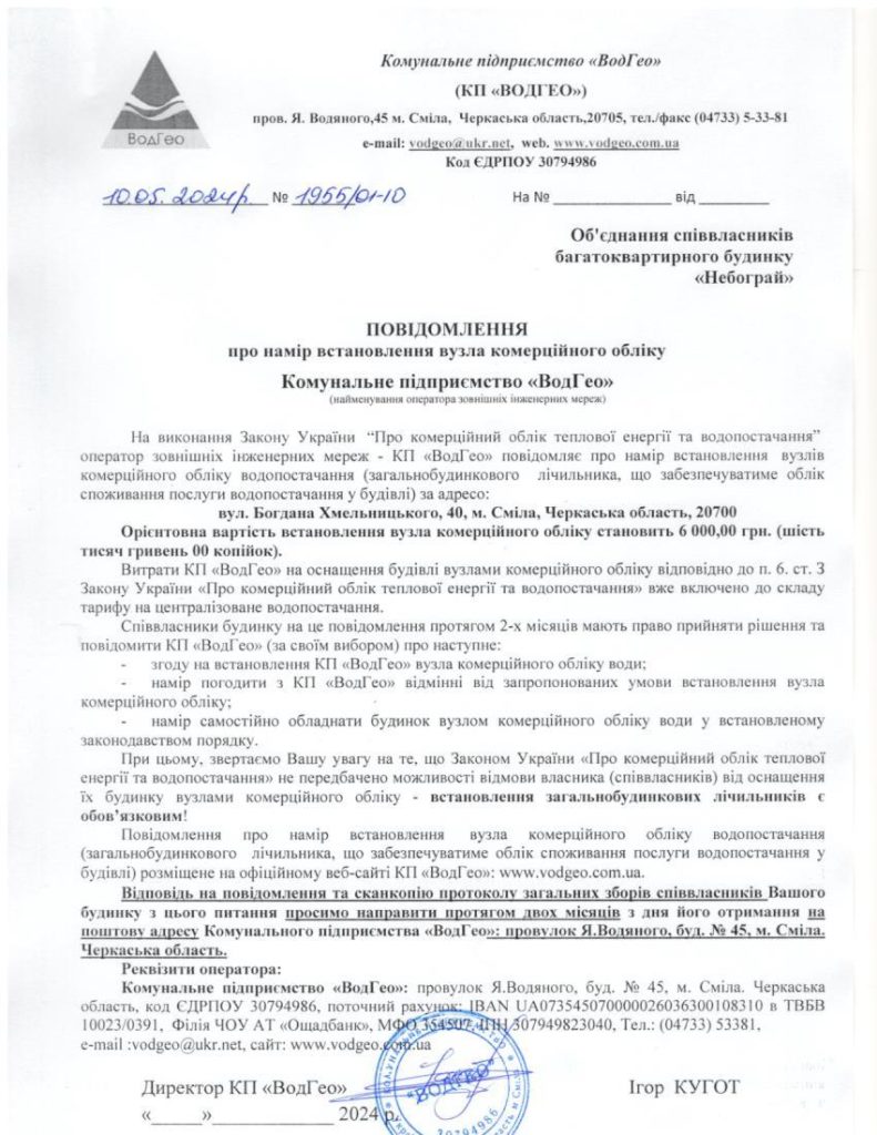 Повідомлення про намір встановлення вузла комерційного обліку по вул. Богдана Хмельницького, 40 Запис опубліковано:10.05.2024 Категорія запису:Повідомлення про намір встановлення Прочитати більше статей Попередній записПовідомлення про намір встановлення вузла комерційного обліку по вул. Василя Стуса, 54 Наступний записПовідомлення про намір встановлення вузла комерційного обліку по вул. Богдана Хмельницького, 48