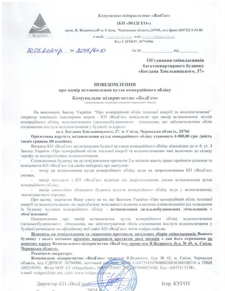 Повідомлення про намір встановлення вузла комерційного обліку по вул. Богдана Хмельницького, 37 Запис опубліковано:30.05.2024 Категорія запису:Повідомлення про намір встановлення Прочитати більше статей Попередній записПовідомлення про намір встановлення вузла комерційного обліку по вул. Богдана Хмельницького, 31 Наступний записПовідомлення про намір встановлення вузла комерційного обліку по вул. Богдана Хмельницького, 39