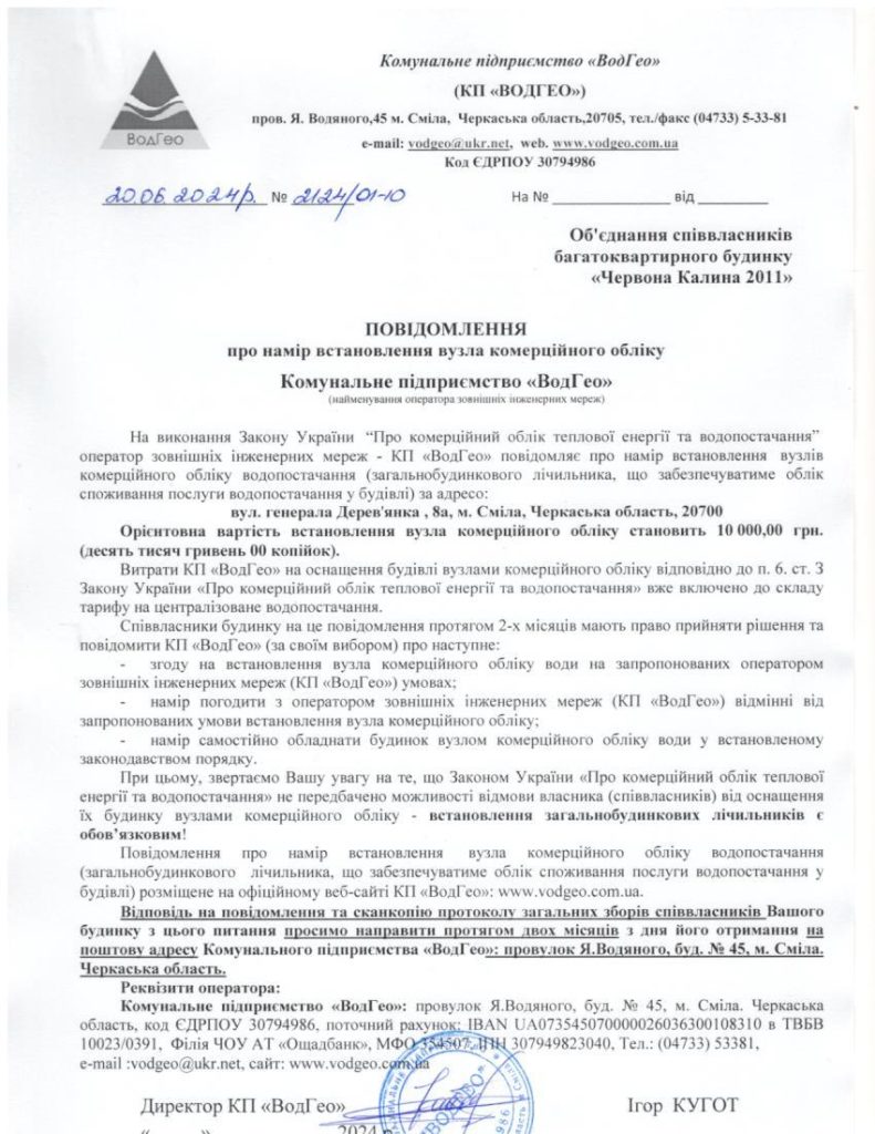 Повідомлення про намір встановлення вузла комерційного обліку по вул. Генерала Дерев’янка, 8а Запис опубліковано:20.06.2024 Категорія запису:Повідомлення про намір встановлення Прочитати більше статей Попередній записПовідомлення про намір встановлення вузла комерційного обліку по вул. Захисників України, 7 Наступний записПовідомлення про намір встановлення вузла комерційного обліку по вул. Генерала Дерев’янка, 8б