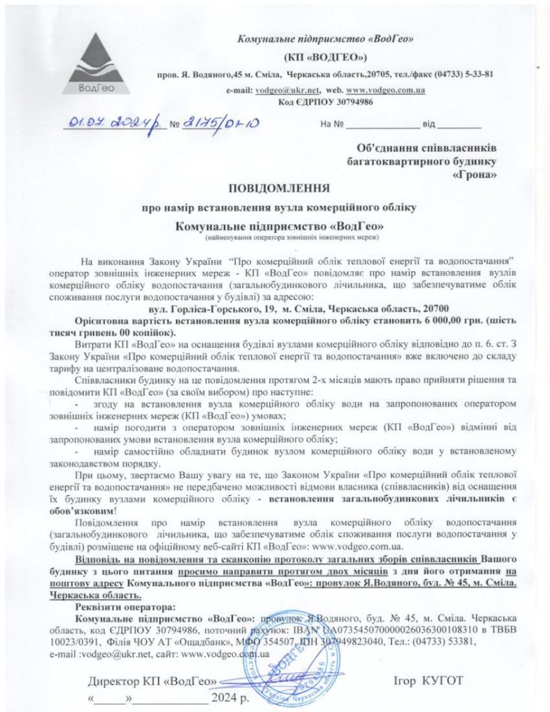 Повідомлення про намір встановлення вузла комерційного обліку по вул. Горліса-Горського, 19 Запис опубліковано:01.07.2024 Категорія запису:Повідомлення про намір встановлення Прочитати більше статей Попередній записПовідомлення про намір встановлення вузла комерційного обліку по вул. Горліса-Горського, 16 Наступний записПовідомлення про намір встановлення вузла комерційного обліку по вул. Мічуріна, 22а, 22б (нова назва Святопокровська)
